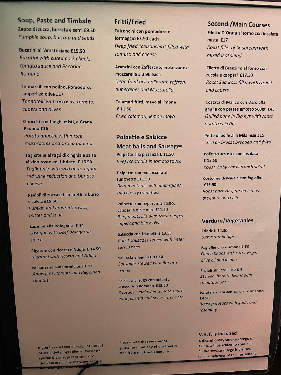 Briciole Menu Review